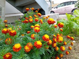 急に気温が下がり、秋も深まる季節になってきました。花壇のマリーゴールドもきれいに咲いてくれています。