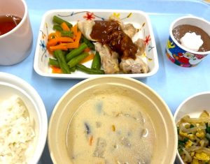 毎月実施のお楽しみ給食は、歩む会様からの援助を受けて施設利用者のみなさんに提供させていただいております。