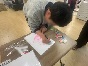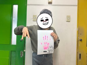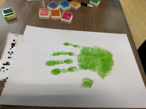 自分で手に塗る色を選び、名前、書ける方は1年の抱負を書いてもらいました。