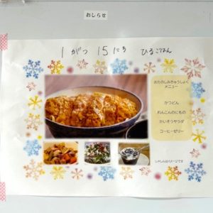 なお、今回も事前に広報担当さんに、みんながよく見る玄関ホールの掲示板おしらせに今回のお楽しみ給食の案内を掲示してもらいました。